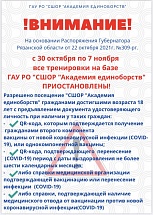 С 30 октября по 7 ноября все тренировки на базе ГАУ РО "СШОР "Академия единоборств" ПРИОСТАНОВЛЕНЫ